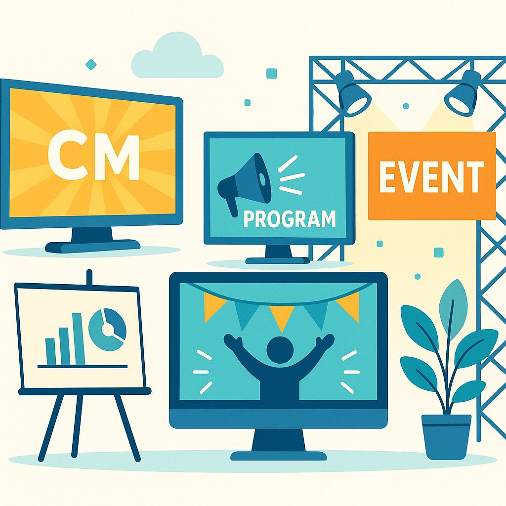 テレビCMや会場広告、協賛映像など、放送・イベント・WEBを横断した映像展開が可能です。